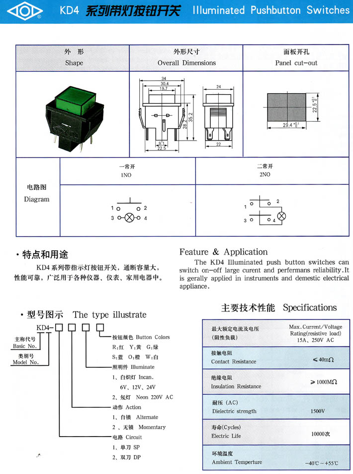 • KD4系列帶燈按鈕開關(guān) 產(chǎn)品型號:KD4系列帶燈按鈕開關(guān)