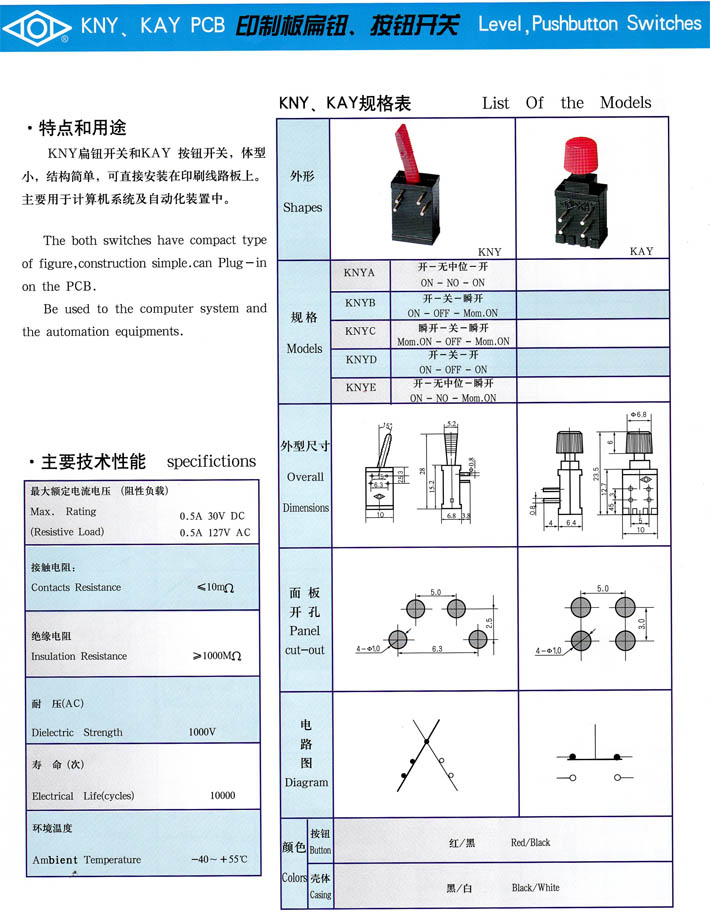 • KAY印制板按鈕KNY扁鈕開(kāi)關(guān) 產(chǎn)品型號(hào):KAY印制板按鈕KNY扁鈕開(kāi)關(guān)